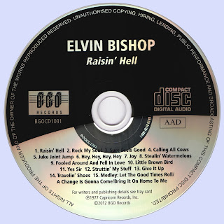 "Live! Raisin' Hell' was recorded between March 1976 and February 1977 initially as a gig in Georgia, and subsequently at four shown in California, was released in late summer 1977, and became Bishop's second US Top 40 album, spending three months in the chart. He does not appear to have subsequently worried mainstream chart compilers, although he remained with Capricorn for two more albums, 1978's "Hog Heaven" on which Amos Garrett and Maria Muldaur guested, and 1979's "Best Of Elvin Bishop".