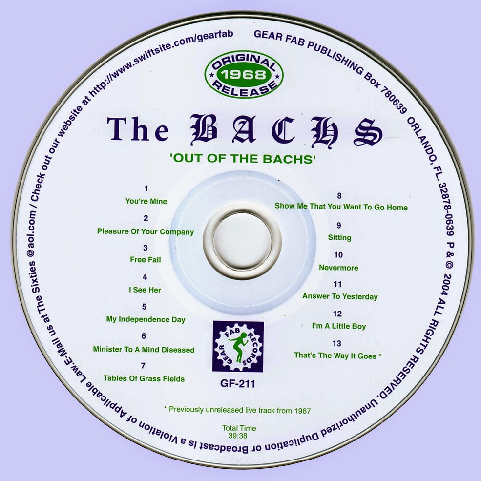 The band members came from the Chicago suburbs of Lake Forest and Lake Bluff. The Bachs existed for 3 years performing at school dances, teen clubs and private parties up and down the Chicago north shore and surrounding suburbs (usually making $150-200 a night). All of the songs were written by Blake Allison and John Peterman and the lp was released privately in 1968. After the release of the lp the band members decided to retire from a career in music and thought it was best to move on with their lives.