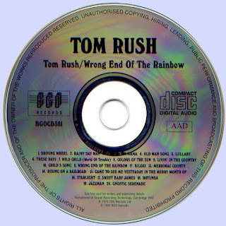 Second self-titled album, this time for CBS, finds Tom Rush continuing to mine the fertile vein of folk-rock songwriters the likes of James Taylor, Jackson Browne, and Canadian Murray McLaughlin. Standouts include David Wiffen's "Driving Wheel," McLaughlin's "Old Man's Song" and "Child's Song," and Browne's "Colors of the Sun." Also, there appears to be a hint of country sneaking into the arrangements. A very solid effort.