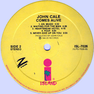 The stark, bruising sound achieved on these live cuts carries a skewed power that Neil Young seems to have sought on many of his albums. The asperity of such songs as Leaving It Up to You and Waiting for My Man, a junkie's lament, becomes mesmerizing. So does Cale's bleak, despairing cover version of Elvis Presley's Heartbreak Hotel. Of the two studio tracks, Ooh La La is a flimsy parody of rap records, but Never Give Up on You is bright and brisk, Cale's closest flirtation with pop. His backup band is unexceptional—the tempo on Dr. Mudd jumps around more than once. Cale overcomes, though. This record has a visceral quality that sets it apart. (Ze Island)