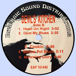 Everybody wants to know about the name: Devil's Kitchen... No we weren't a devil-worship-motorcycle-gang-heavy-metal-band... That wasn't what we were called when we formed and for the first year or two we were playing. We started out as "Om", the Hindu word/concept (click on the symbol to learn more about the meaning)... but when we got to San Francisco there were two or three other bands named that or some variation of spelling (most notably, AUM) playing in the Bay Area. We had spent a couple months practicing at the lakeside vacation cabin of the family of our good friend and roadie, Rolf Olmsted. We had fond memories of our time there and named the group after the lake - Devil's Kitchen Lake, an 810-acre lake about 8 miles from Carbondale (home of Southern Illinois University).